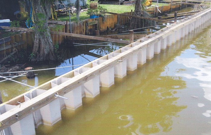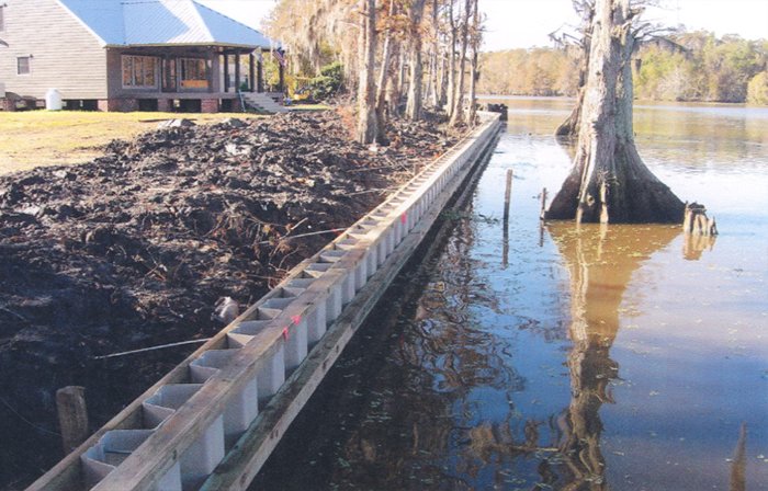 Vinyl bulkhead: Installation shows the amount of property regained...