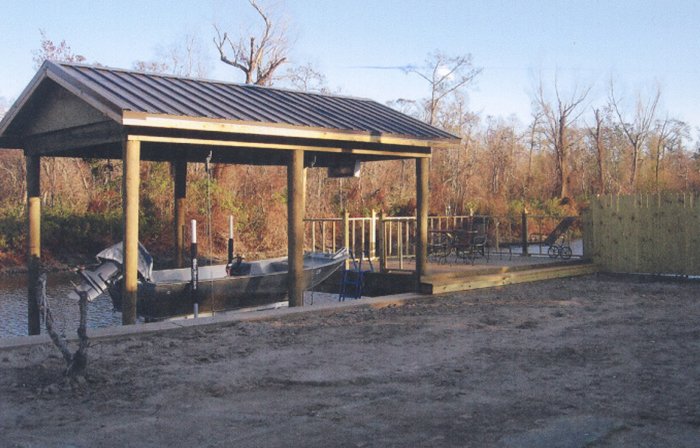 Vinyl Bulkhead with boat stall, deck and hand railing..