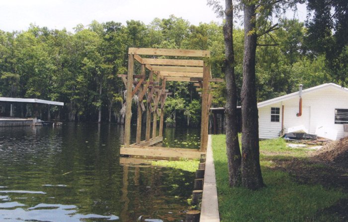 Vinyl Bulkhead with boat stall, deck and hand railing..